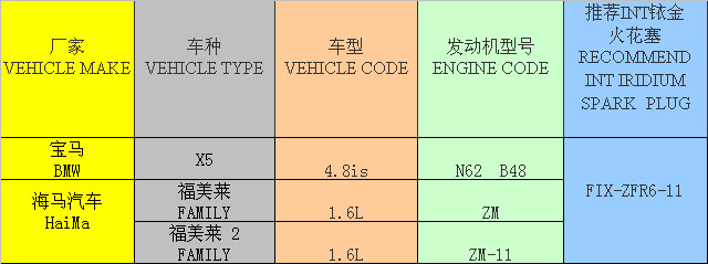 application chart for automobile,