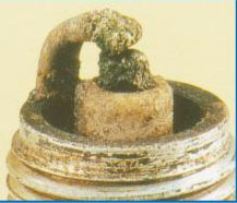 Electrode melted,the end of center electrode and earth electrode appear melt.